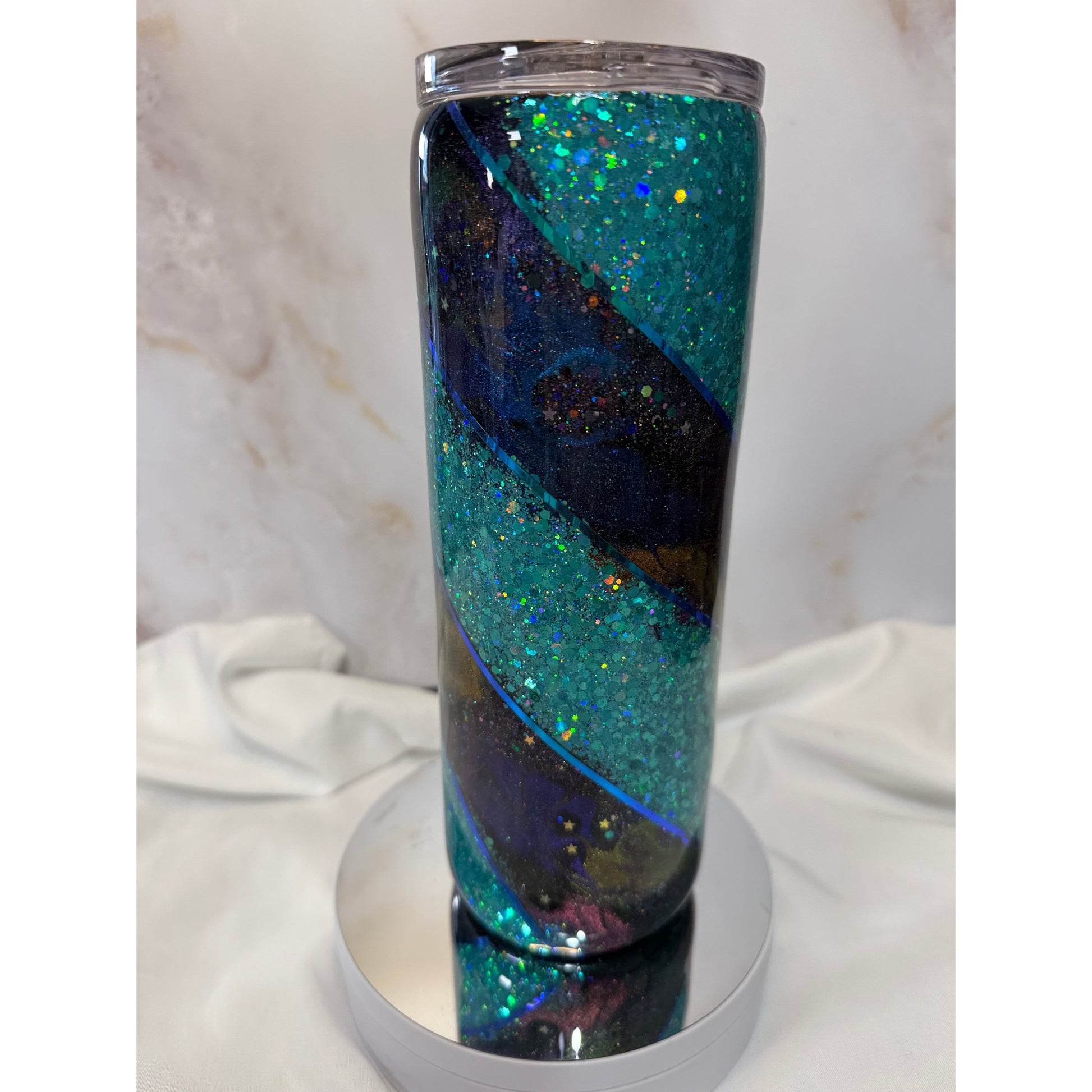 #516 Teal Glitter and Ink Drop Swirl 20oz Tumbler