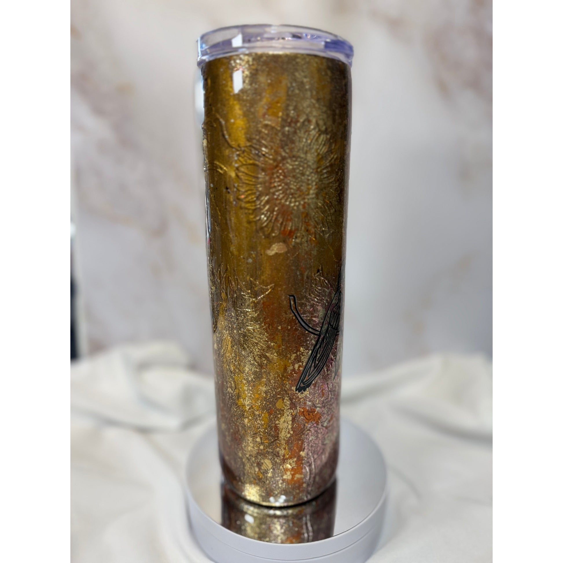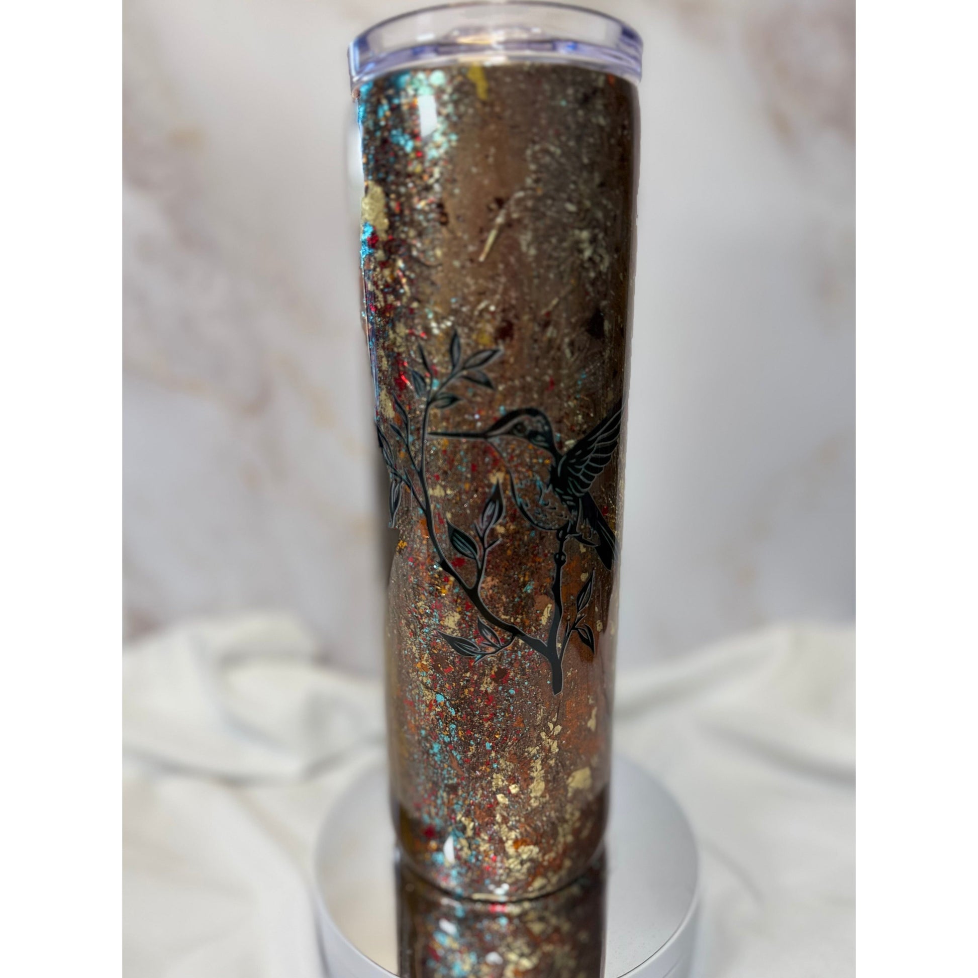 #525 Bronze Foil Flake Sunflower Hummingbird Tumbler