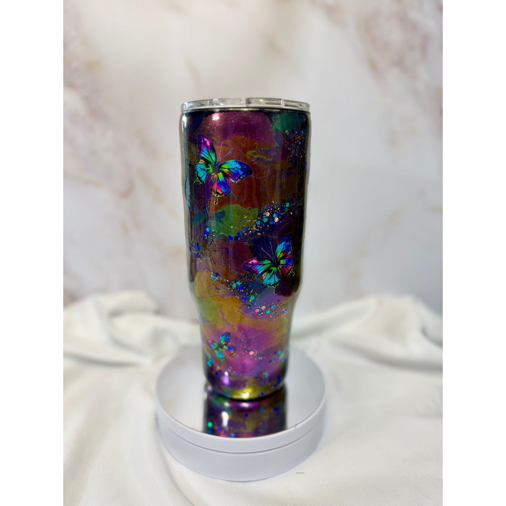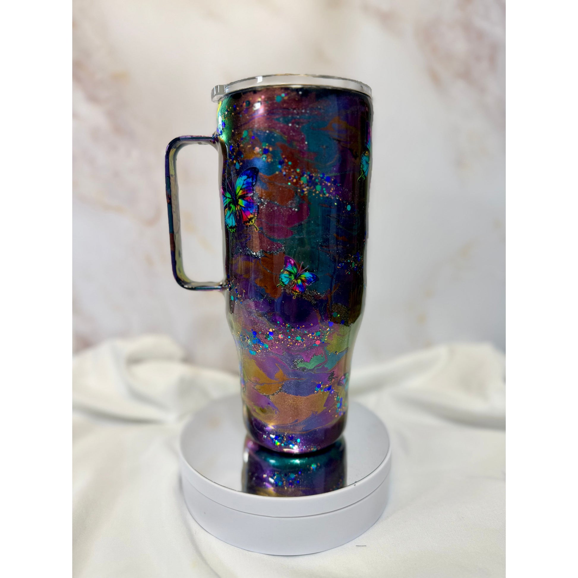 #511 Chameleon Chrome Glitter and Butterfly 24oz Handle Tumbler