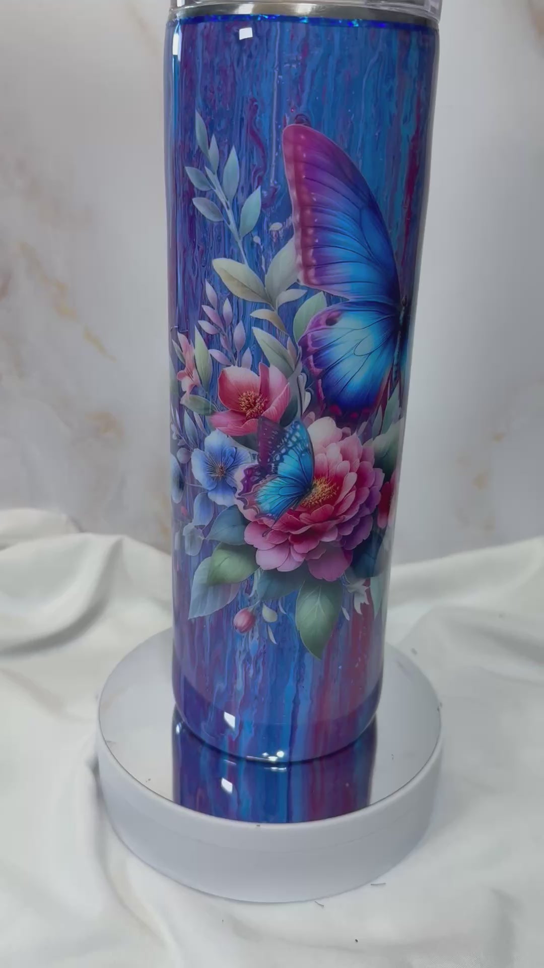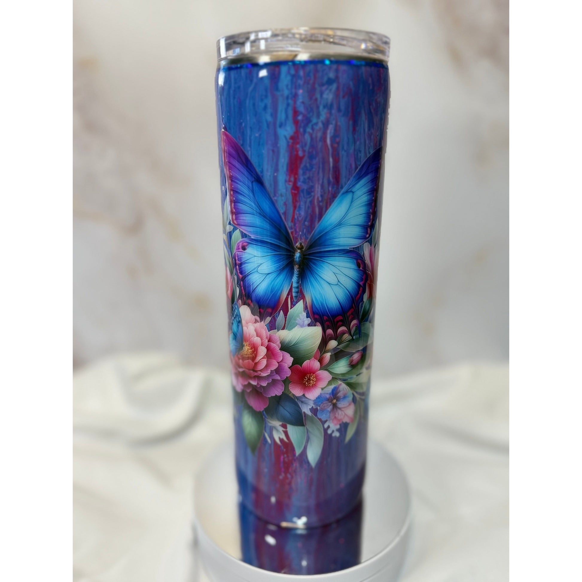 #529 Colorful Paint Pour with Butterfly and Flowers