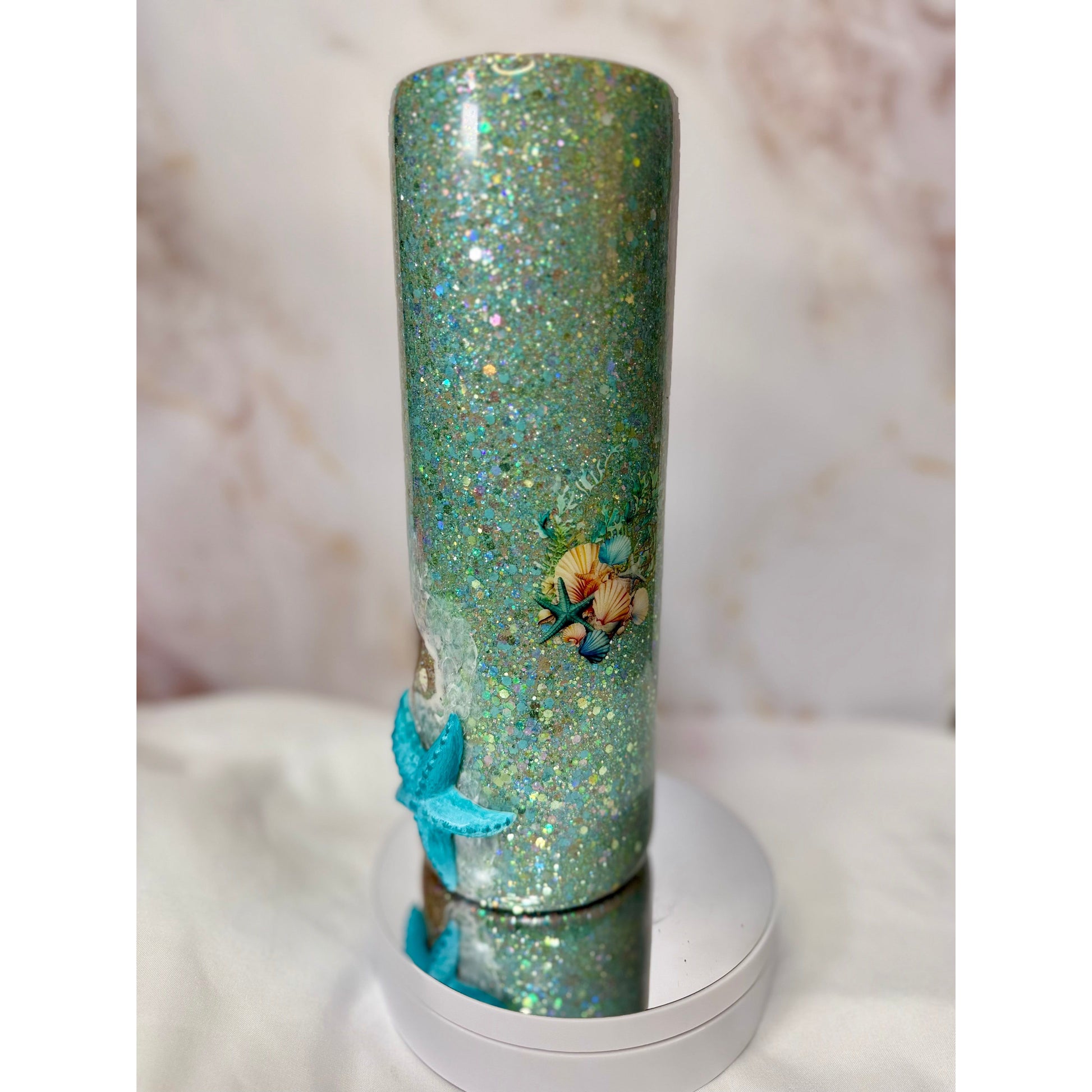 Vertical Gold and Aqua Glitter Beach Tumbler