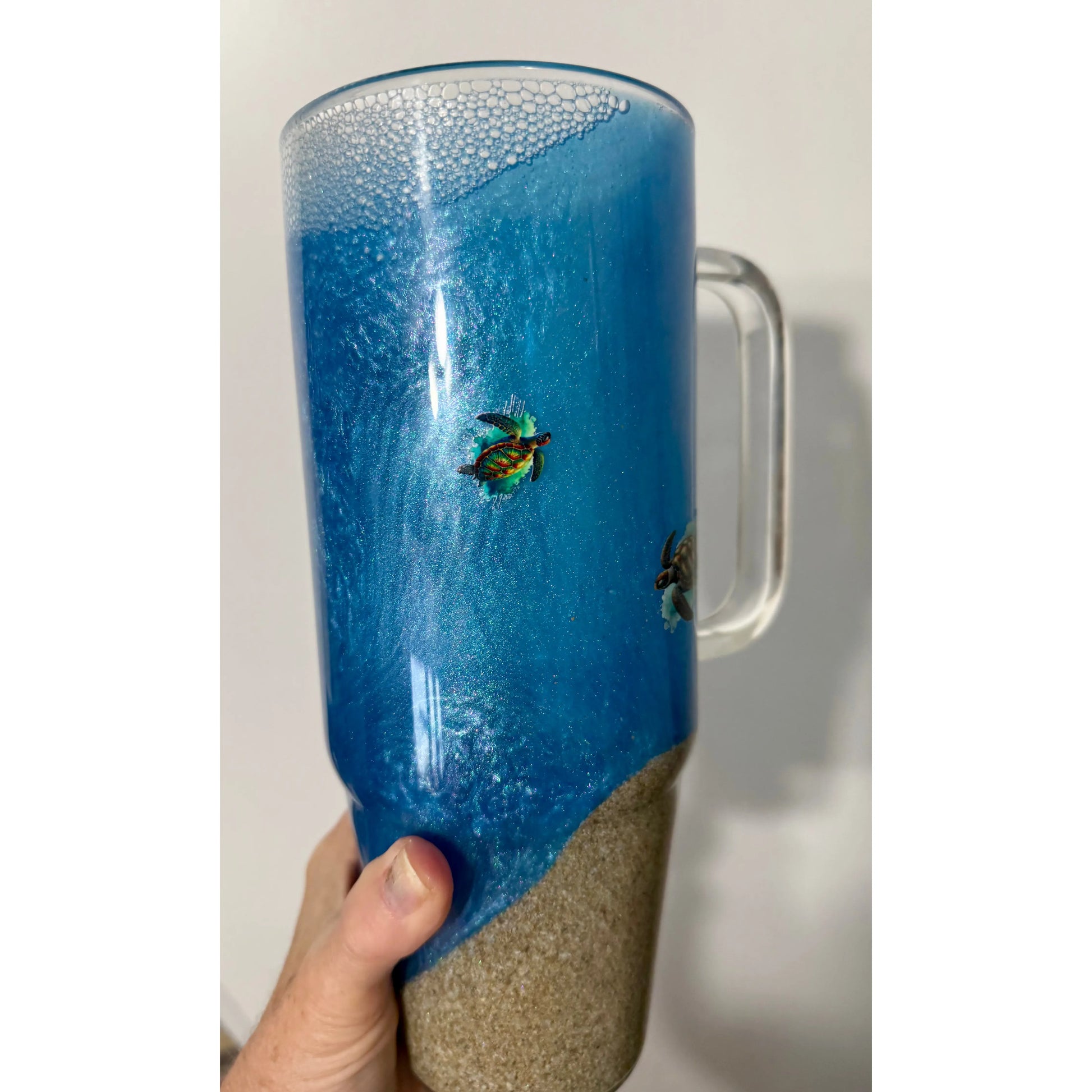 Do not place your Tumbler in the dishwasher. Please to do not soak. Clean outer resin surface with Isophrophol and a soft cloth.