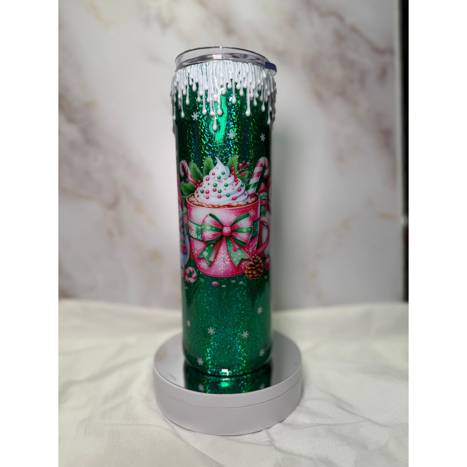 #601 Green Holiday Foil with Snow Drip Showman on 30oz Stainless