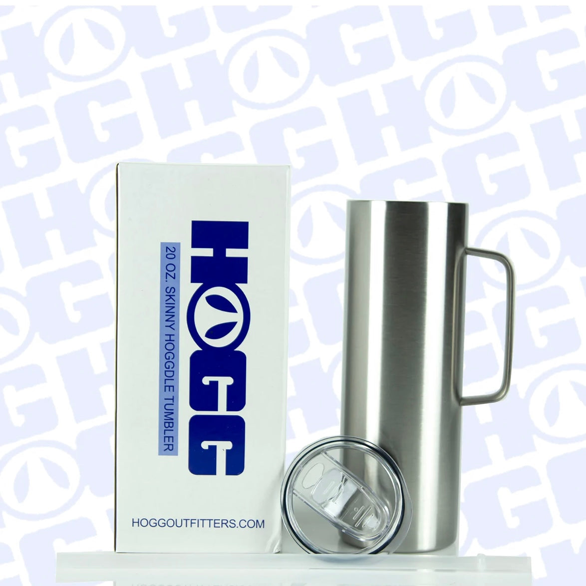 A Stainless Steel 20 OZ Tumbler with Handle is a straight skinny with sliding lid and straw.